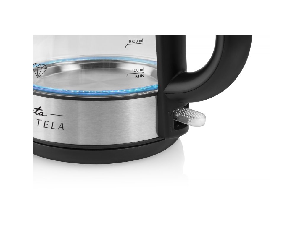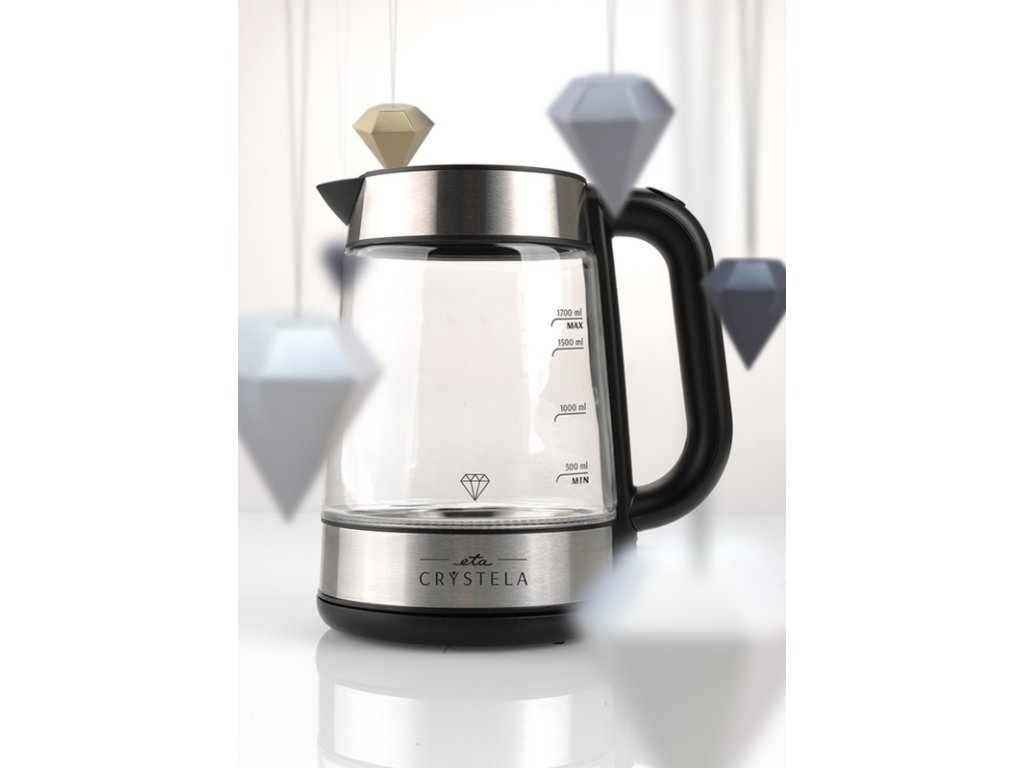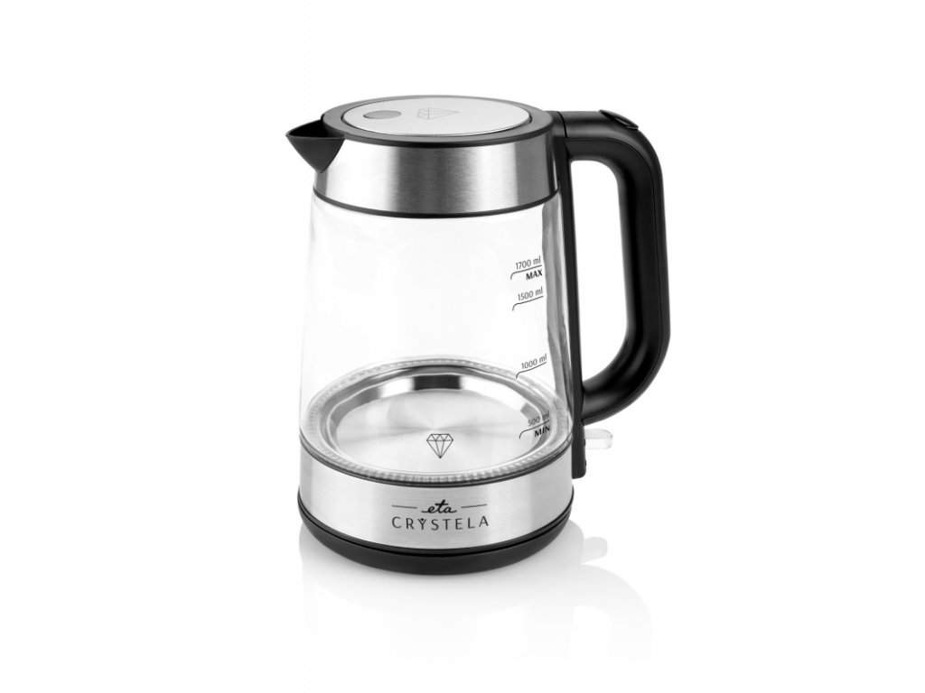 ETA Crystela je designová rychlovarná konvice z čirého, velmi odolného skla, která vyšperkuje vaši kuchyni. Na elegantním vzhledu jí přidává vnitřní modré LED osvětlení, které dotváří velmi příjemnou kulisu.